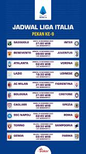 Akan mulai bergulir pada akhir bulan depan (25/08/19) jadwal kompetisi serie a liga italia 2019/20 secara resmi telah diumumkan lengkap. Cek jadwal klub favoritmu : Jadwal liga italia 2021/2022 sepakbola terlengkap. Jadwal lengkap siaran langsung/live streaming liga italia/ serie a 2021 pekan 10 serta klasemen terbaru jadwal siaran langsung liga italia . Berikut adalah jadwal pertandingan liga italia serie a 2018/2019: